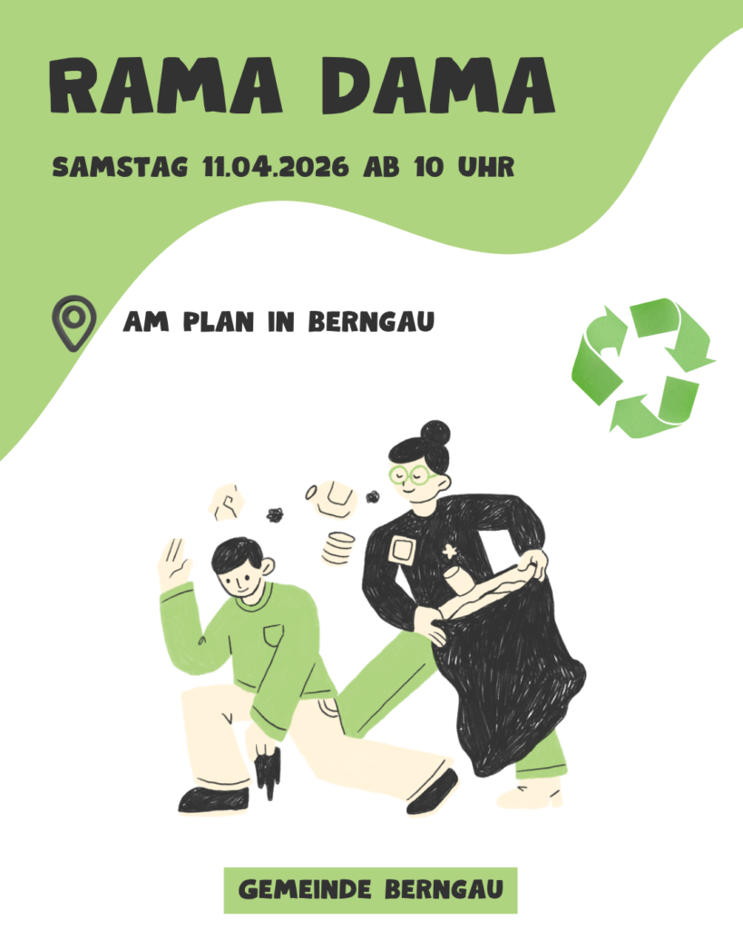 Vor allem nach den Wintermonaten wird sichtbar, was Menschen alles so in die Umwelt tragen. Insbesondere an Waldrändern, auf Wiesen und Feldern, in Straßengräben und entlang von Geh- und Radwegen sammelt sich viel Abfall an. Zusammen mit engagierten Gemeindevereinen sowie verschiedenen Gruppen und Organisationen der Gemeinde Berngau wollen wir auch in diesem Jahr wieder im gesamten Gemeindebereich Berngau die Wege und Fluren von Unrat säubern und den Müll aufsammeln. Helfer und Unterstützer der Frühjahrsputz-Aktion treffen sich am Samstag, 11. April 2026 um 10.00 Uhr in Berngau Am Plan. Hier werden weitere Regelungen getroffen. Die Müll-Abgabestelle befindet sich an der Erkläranlage Berngau.